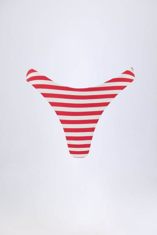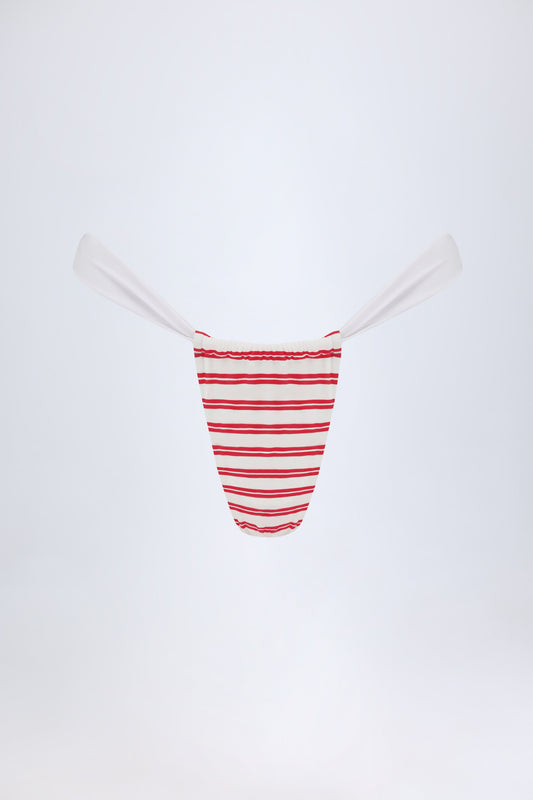 Contrast Belted Thong Bikini Bottoms in Cherry Print