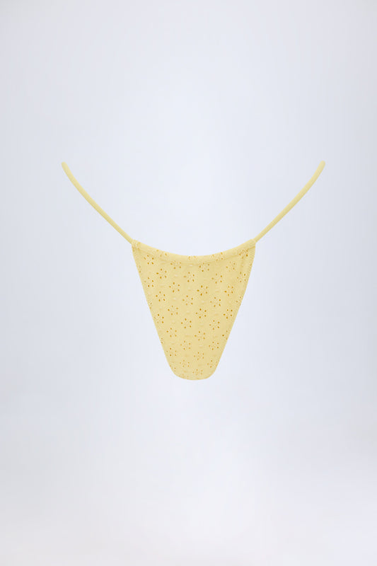Broderie Anglaise Drawstring Bikini Bottoms in Lemon Yellow