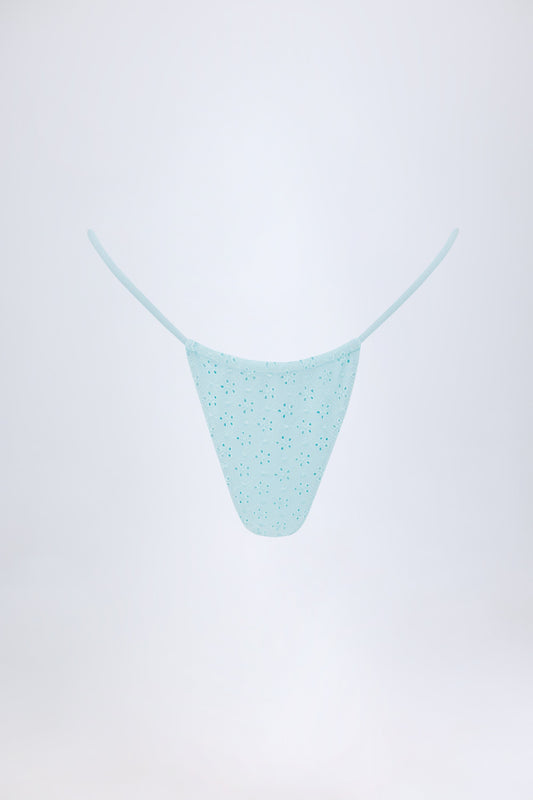 Broderie Anglaise Side-Tie Thong Bikini Bottoms in Powder Blue