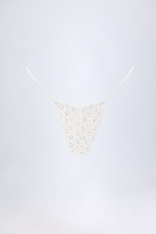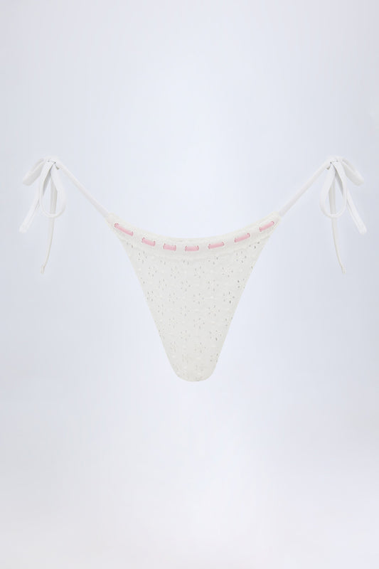 Broderie Anglaise Side-Tie Thong Bikini Bottoms in White