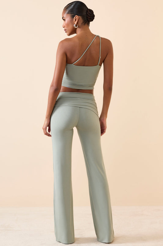Fold-Over Flared Trousers in Soft Pink