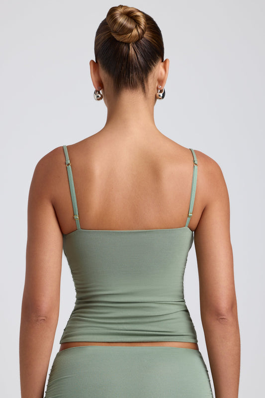 Modal Ruched Mid-Rise Mini Skirt in Sage Green