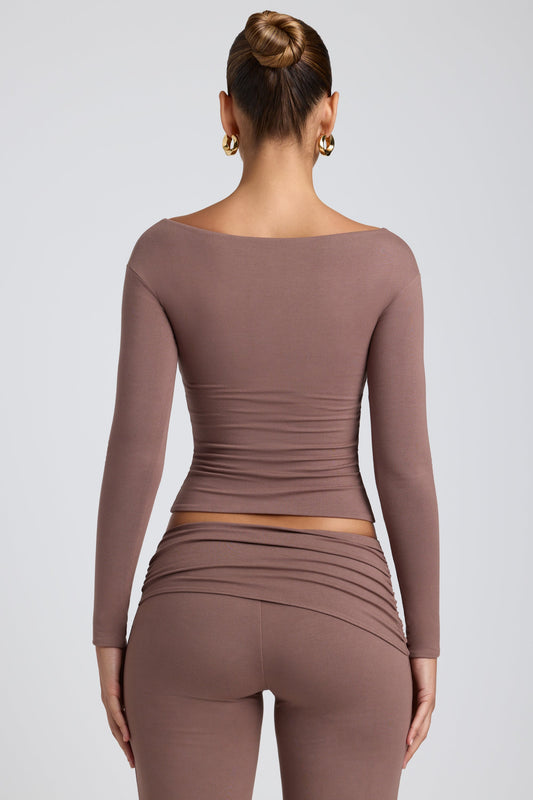 Modal Twist-Front Long-Sleeve Crop Top in Taupe