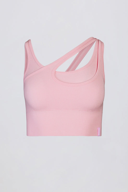 Seamless Soft Rib Asymmetric Sports Bra in Powder Pink