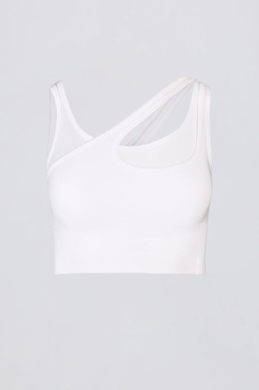 Seamless Soft Rib Asymmetric Sports Bra in White