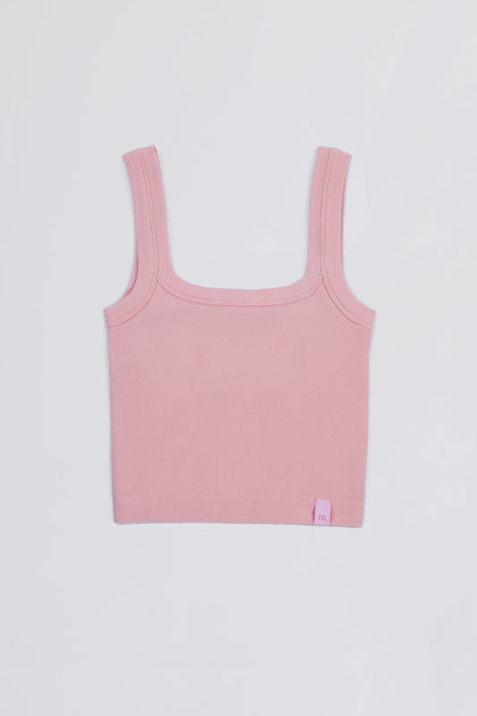 Seamless Soft Rib Square-Neck Tank Top in Powder Pink