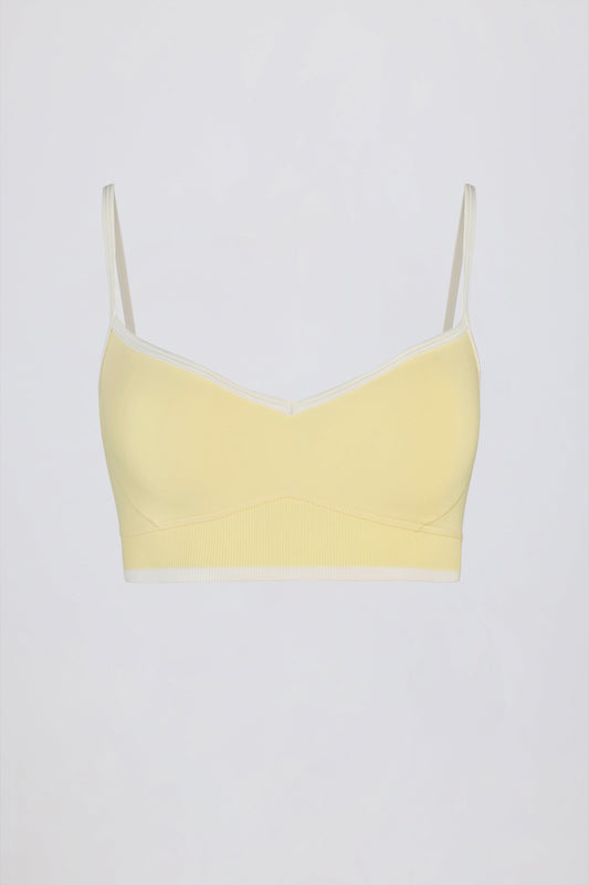 Soft Active Sweetheart-Neck Contrast Sports Bra in Soft Yellow