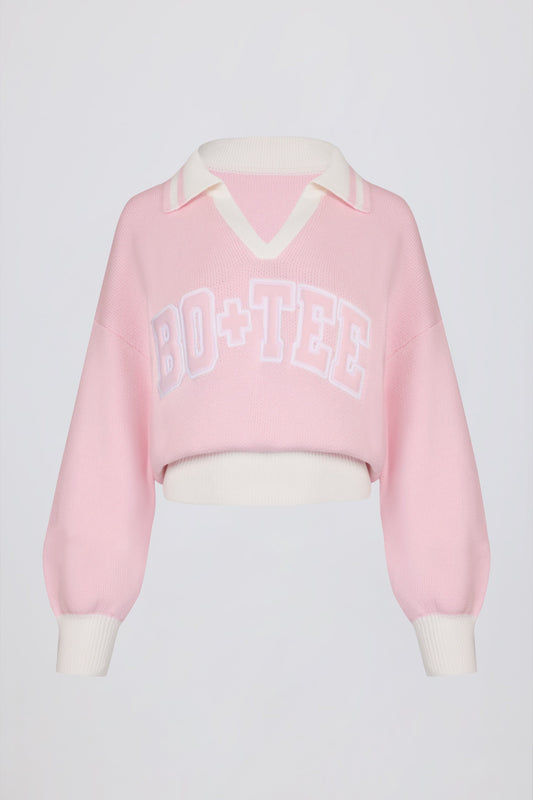 Ribbed-Knit Quarter-Zip Cropped Jumper in Powder Pink