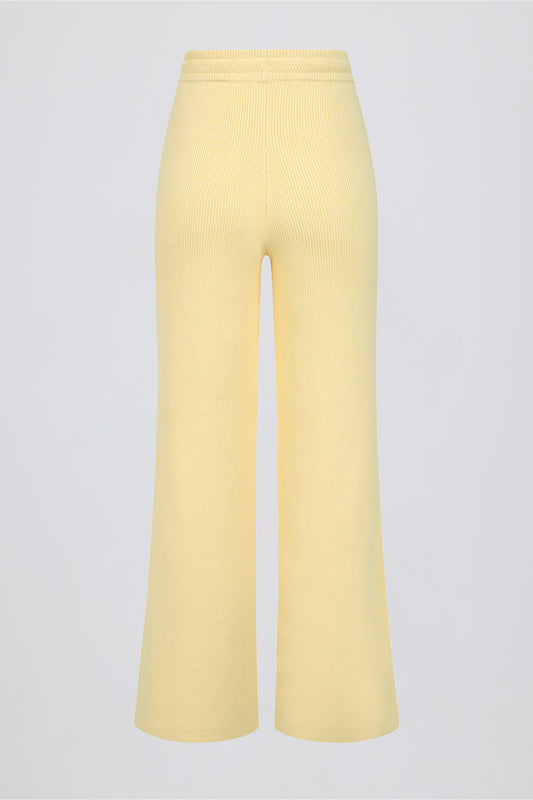 Ribbed-Knit Wide-Leg Joggers in Lemon