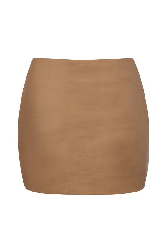 Soft Mesh Low-Rise Micro Mini Slip Skirt in Almond