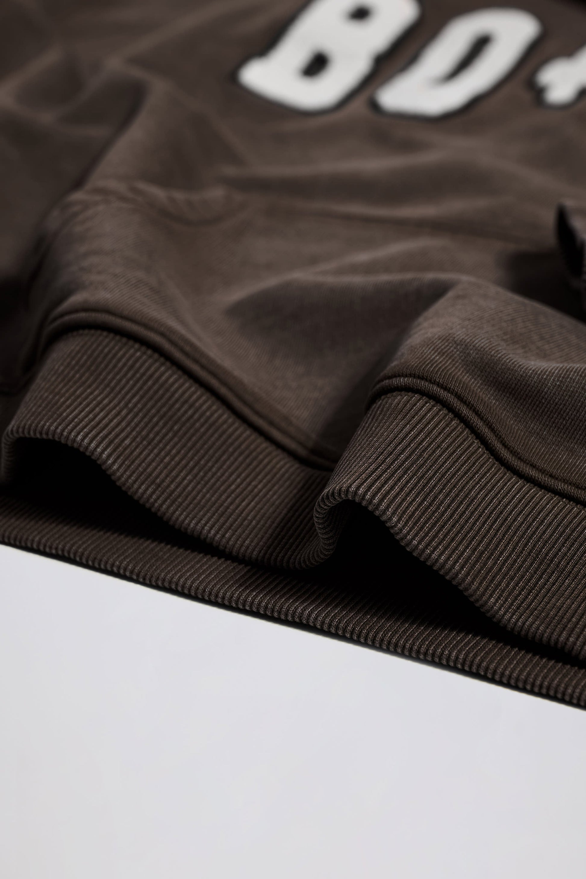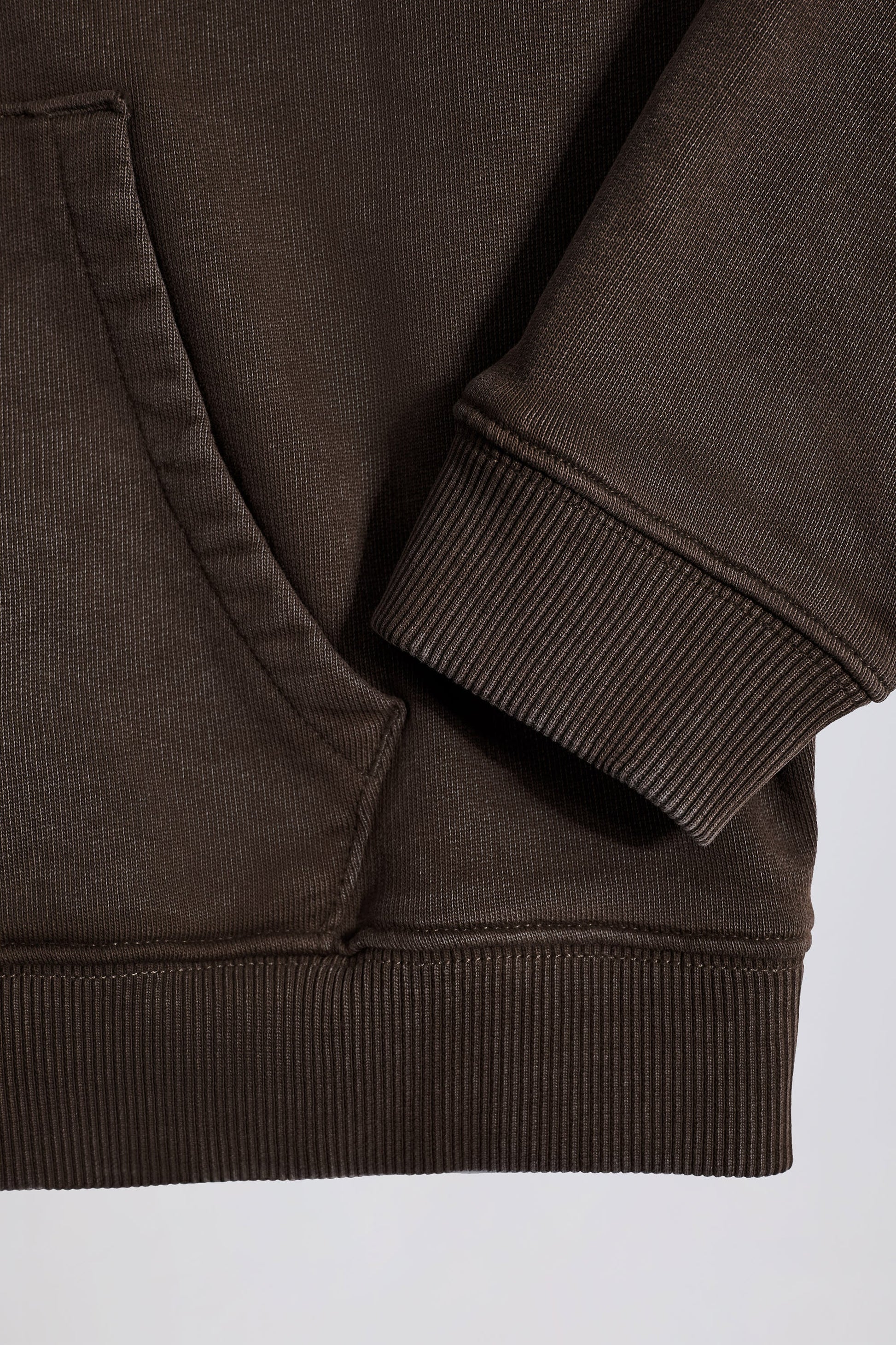 Find your balance. The perfect post-workout and off-duty layer, this hoodie is made from naturally breathable 395gsm cotton jersey with a custom acid wash effect for a super soft, lived-in and cosy feel. The signature oversized silhouette is elevated with dropped shoulders, a kangaroo pocket at the front, and an appliquéd chenille logo inspired by classic varsity styles.