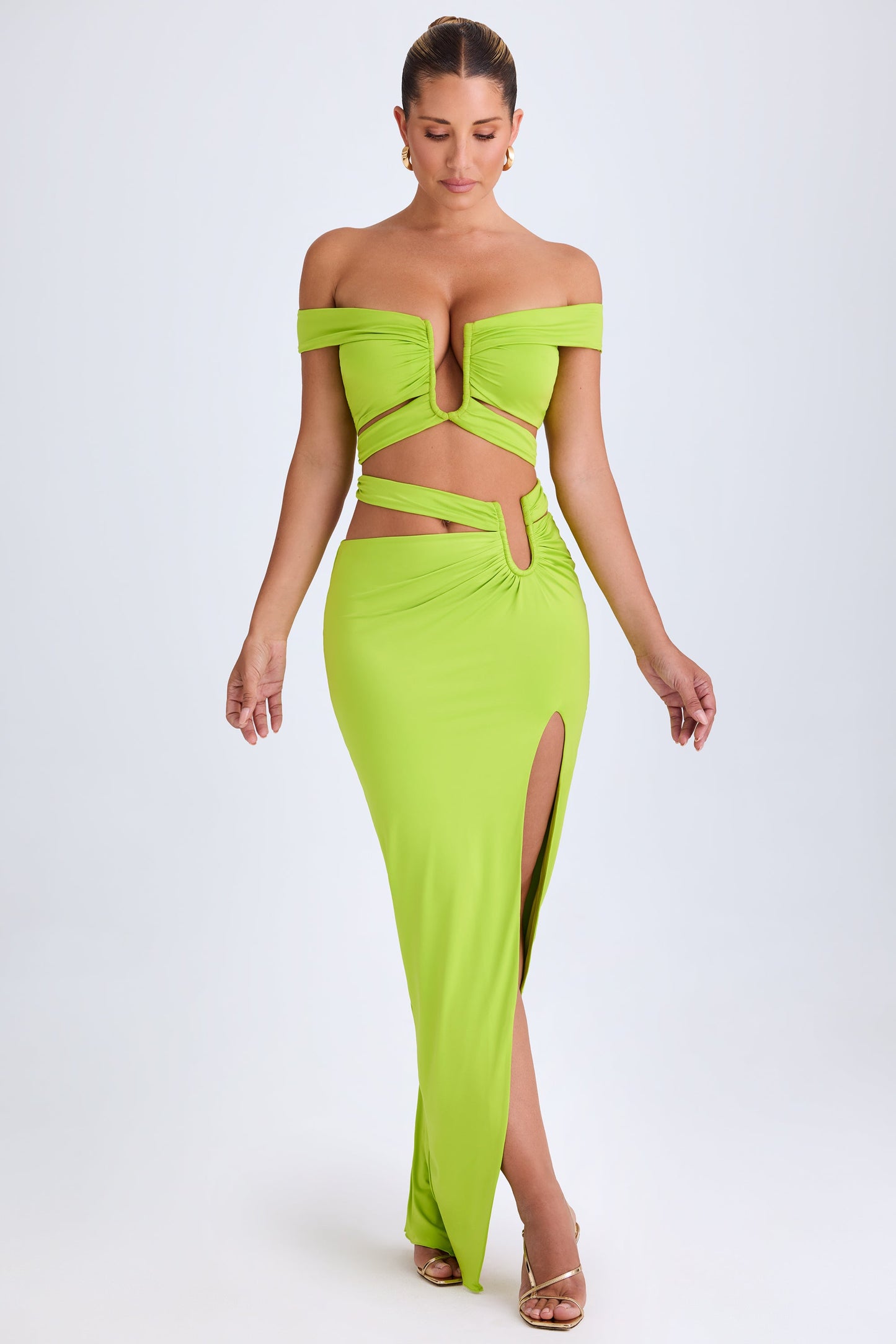 Asymmetric Cut-Out Maxi Skirt in Lime Green
