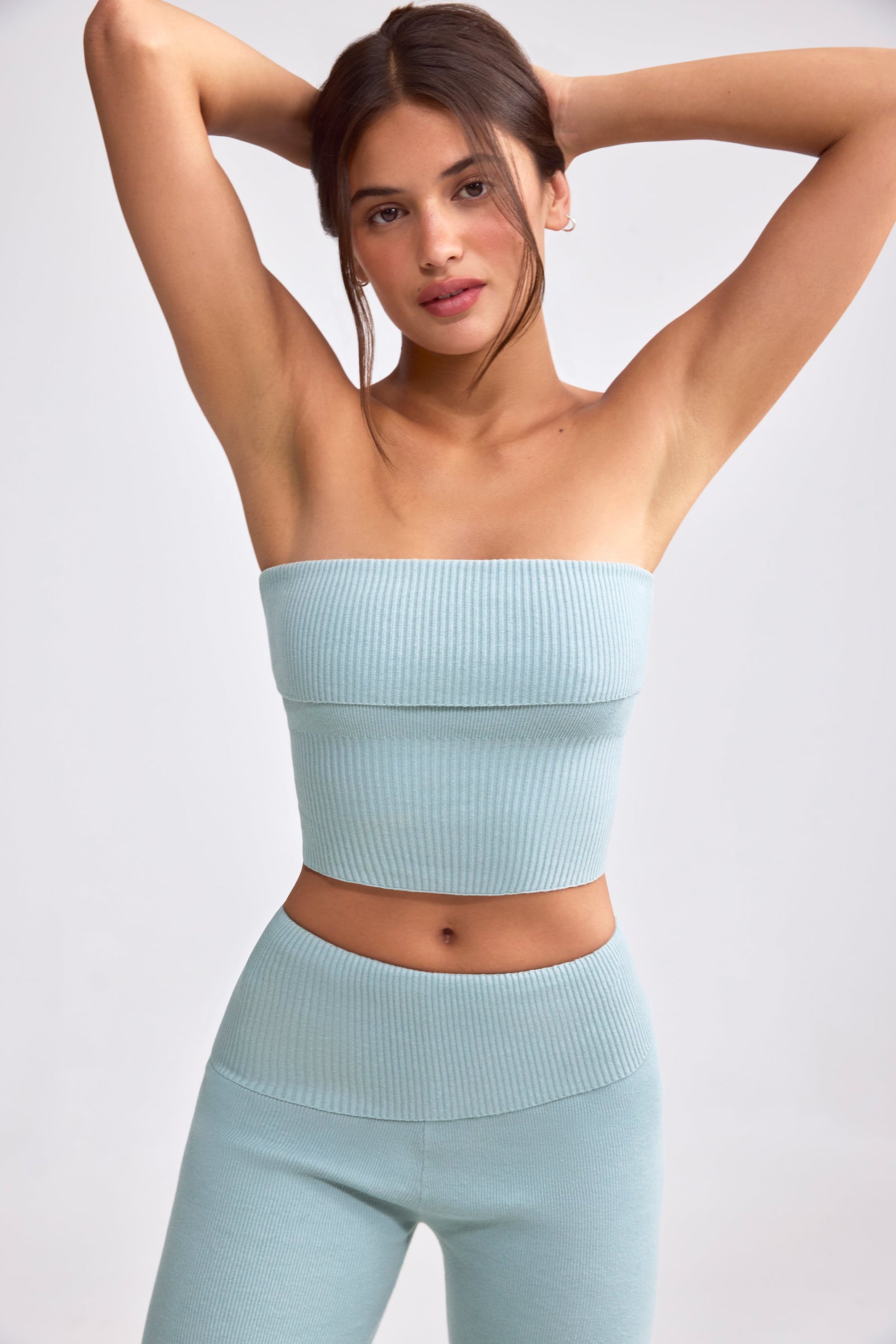 Bandeau Chunky Knit Crop Top in Dusty Teal