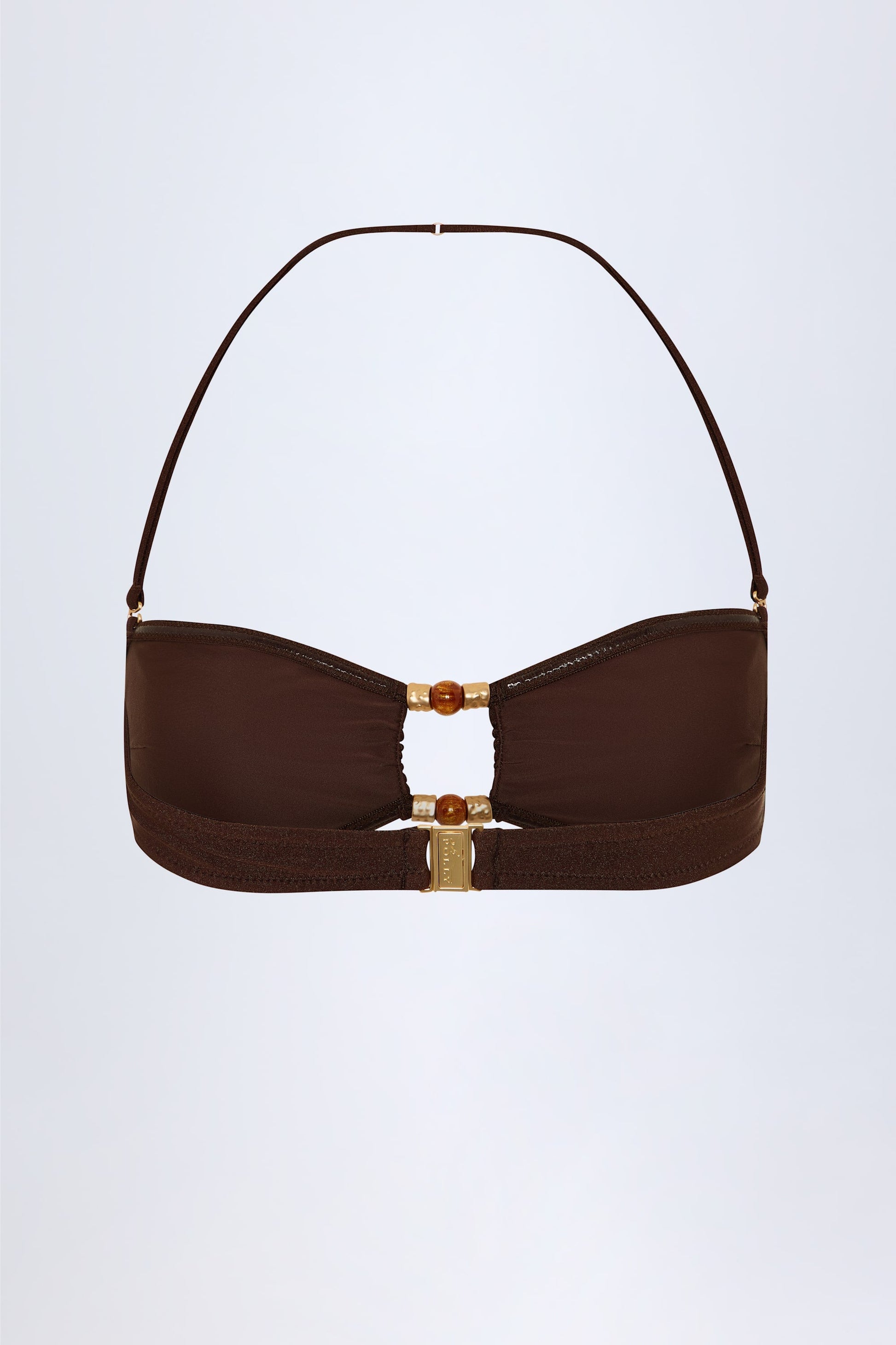 Bead-Embellished Bandeau Bikini Top in Dark Chocolate