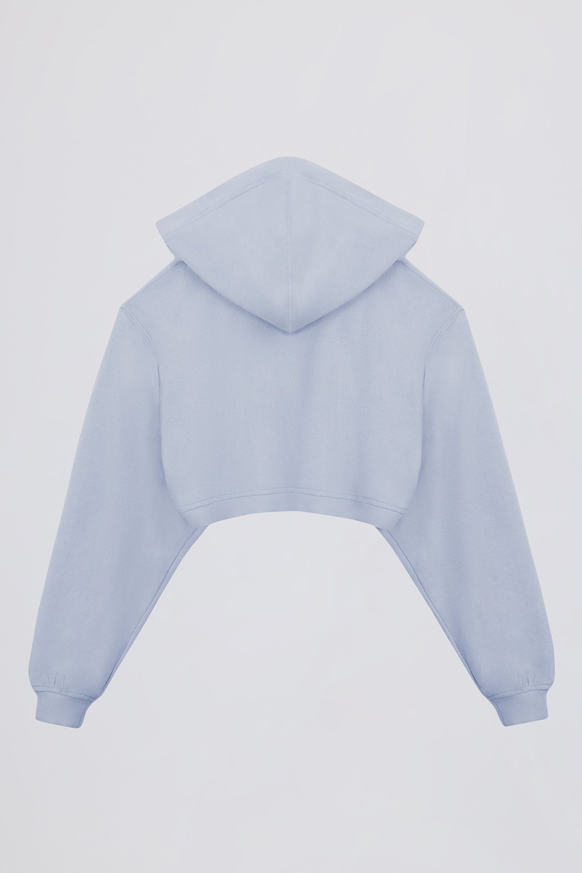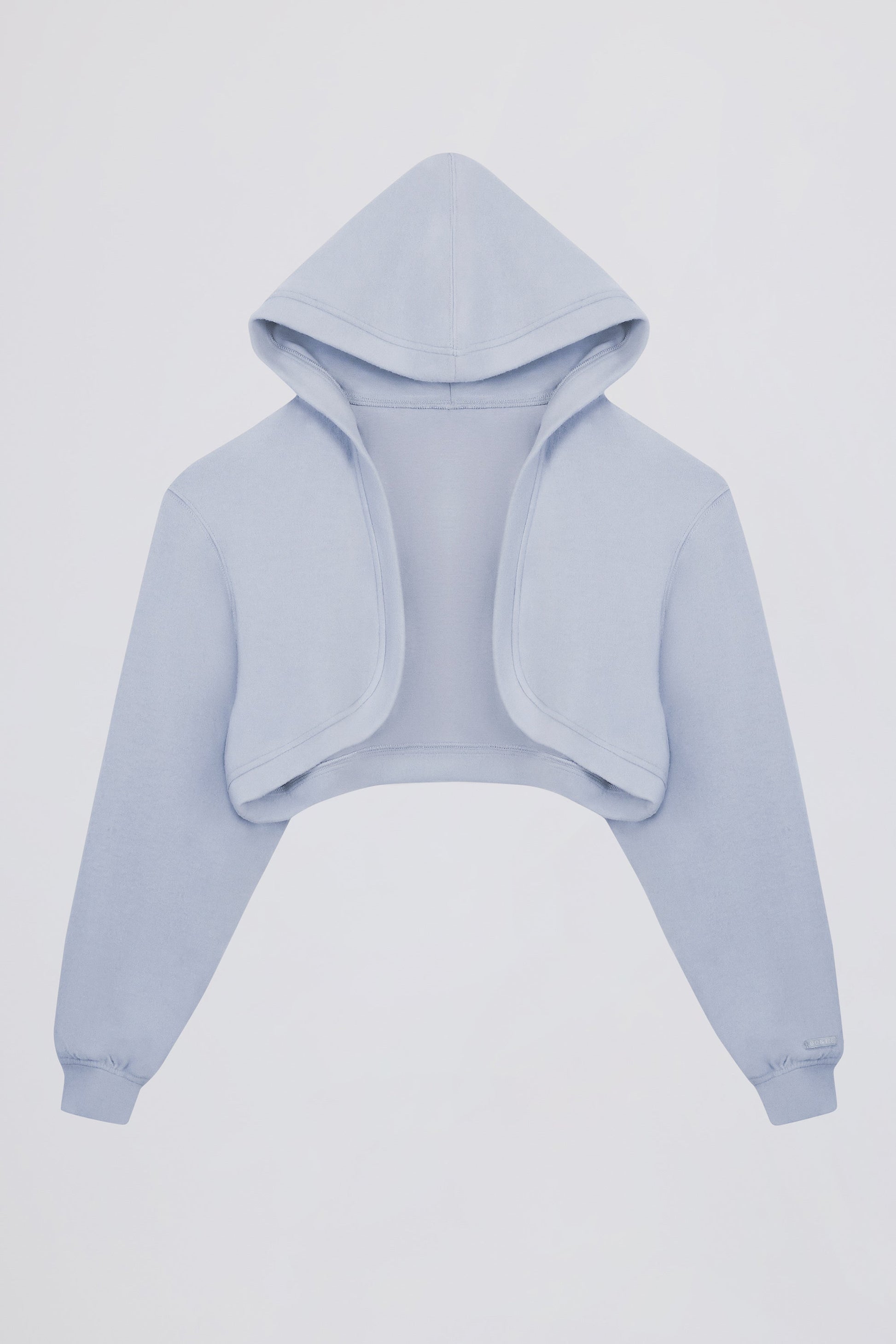 Brushed Jersey Hooded Cropped Shrug in Soft Blue