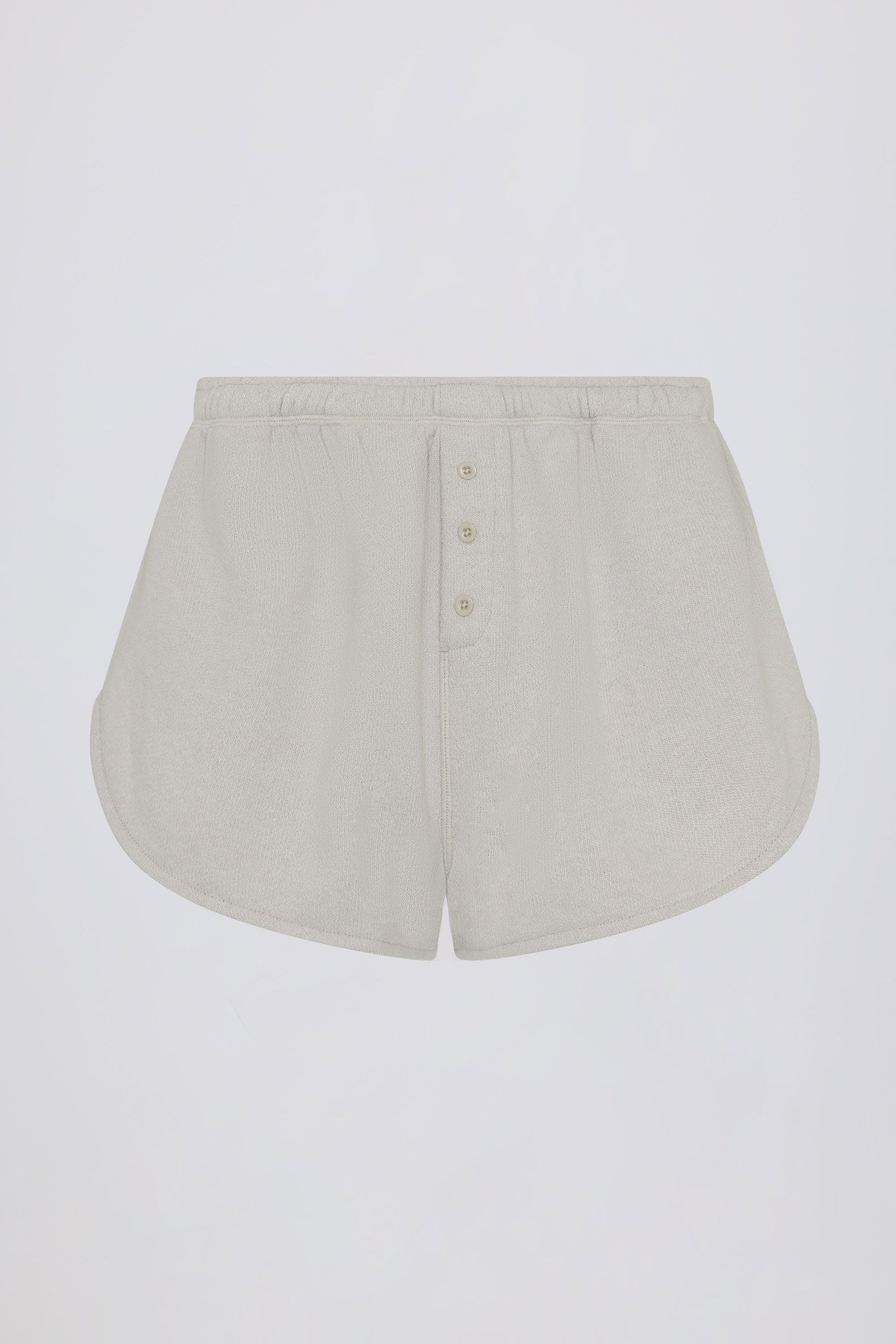 Sunny day styling in its softest form. Inspired by classic boxer styles for a laid-back look, these shorts are detailed with a decorative buttoned fly at the front. Perfect for warmer days, they’re crafted from textured cotton-blend terry with a lightweight and breathable feel. The elasticated mid-rise waistband and split hems mean maximum comfort no matter your plans.