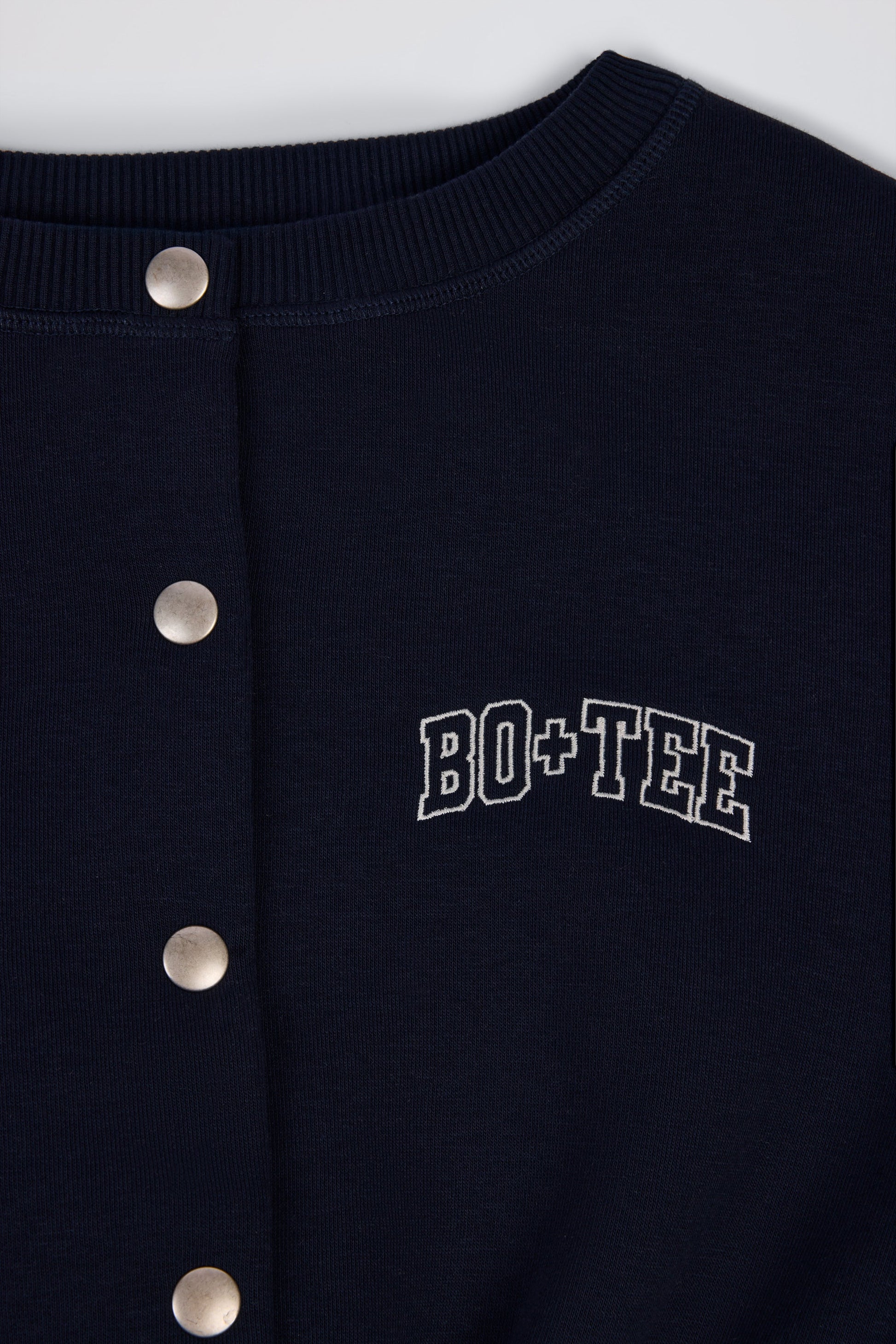 Off-duty staples, fresh spirit. Inspired by classic varsity styles, this cardigan is crafted from soft brushed-back jersey to a cropped silhouette. Framed with elasticated ribbed trims and drop shoulders that accentuate the relaxed fit, it’s finished with tonal popper fastenings at the front.