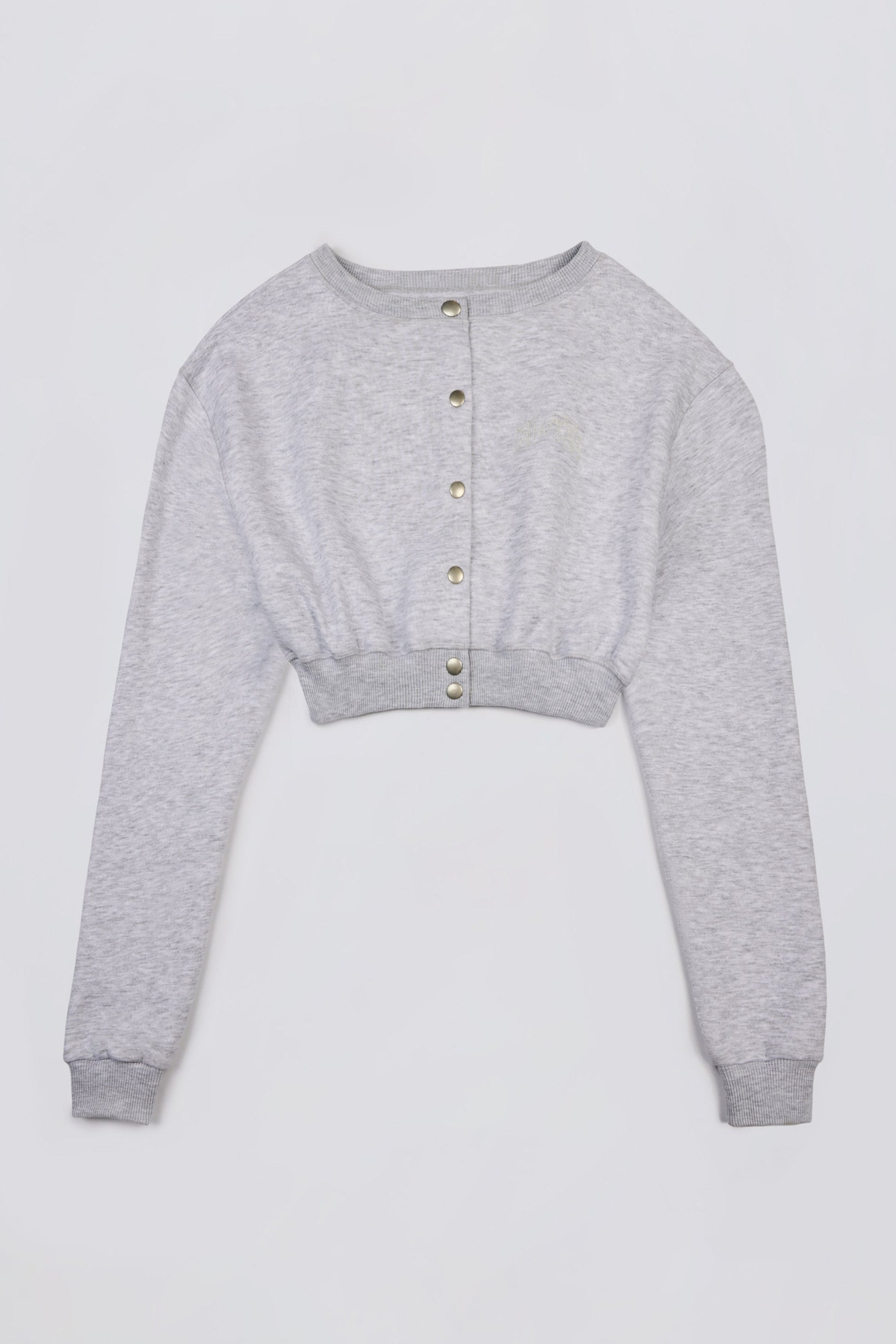 Off-duty staples, fresh spirit. Inspired by classic varsity styles, this cardigan is crafted from soft brushed-back jersey to a cropped silhouette. Framed with elasticated ribbed trims and drop shoulders that accentuate the relaxed fit, it’s finished with tonal popper fastenings at the front.