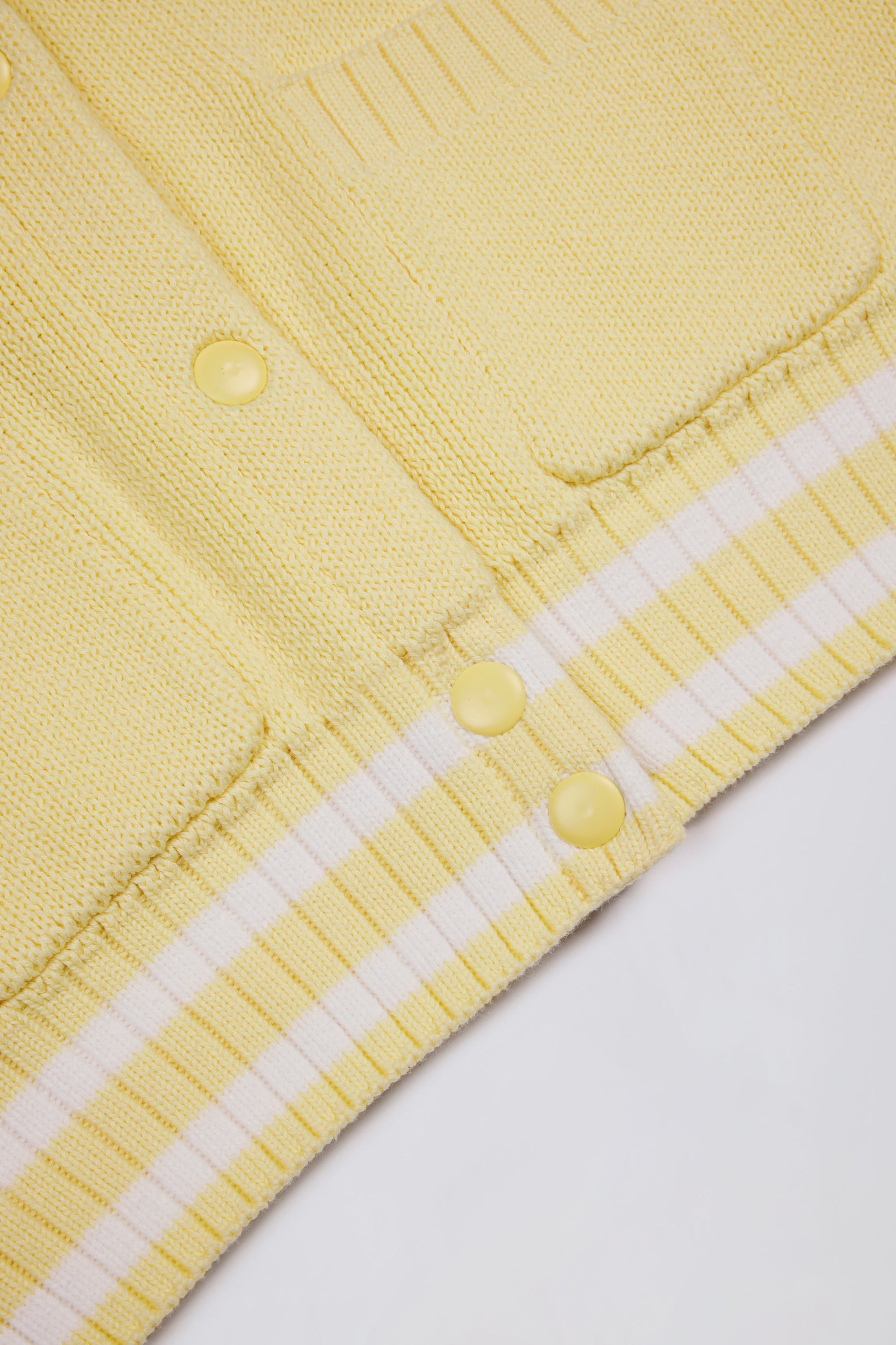 Button-Up Cropped Knit Cardigan in Soft Yellow
