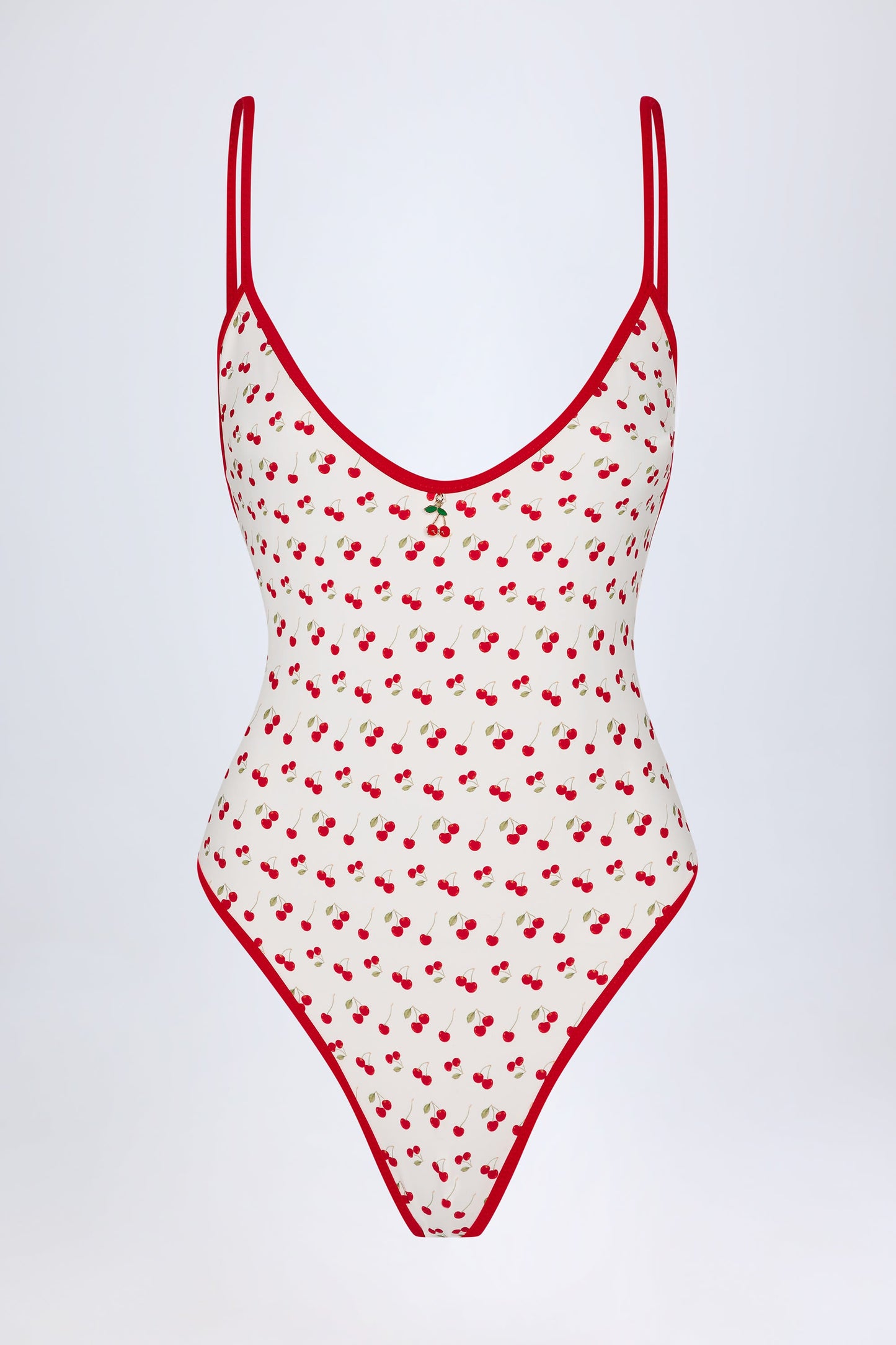 Charm-Detail Cross-Back Swimsuit in Cherry Print