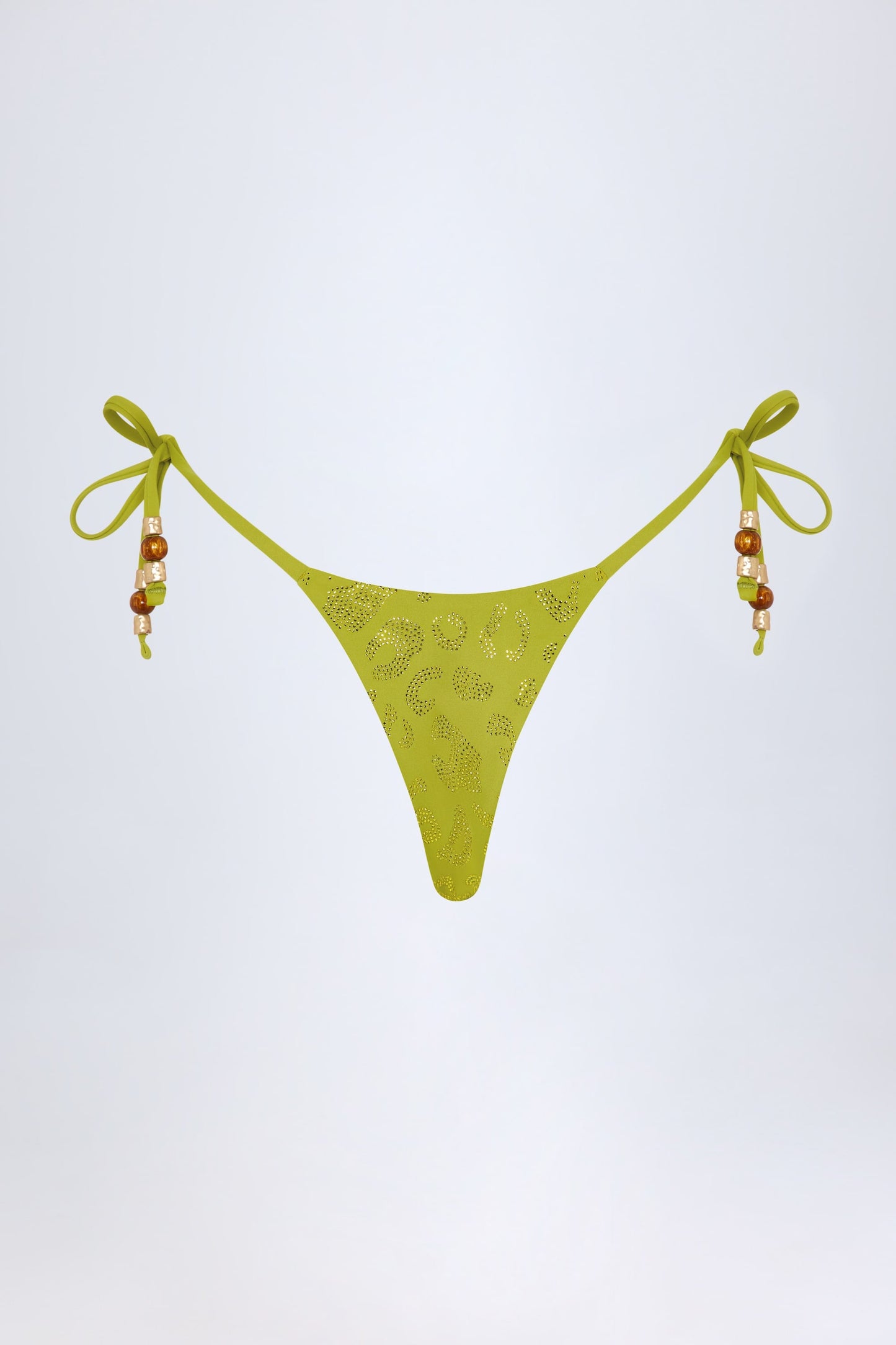 Charm-Detail Thong Bikini Bottoms in Olive Green