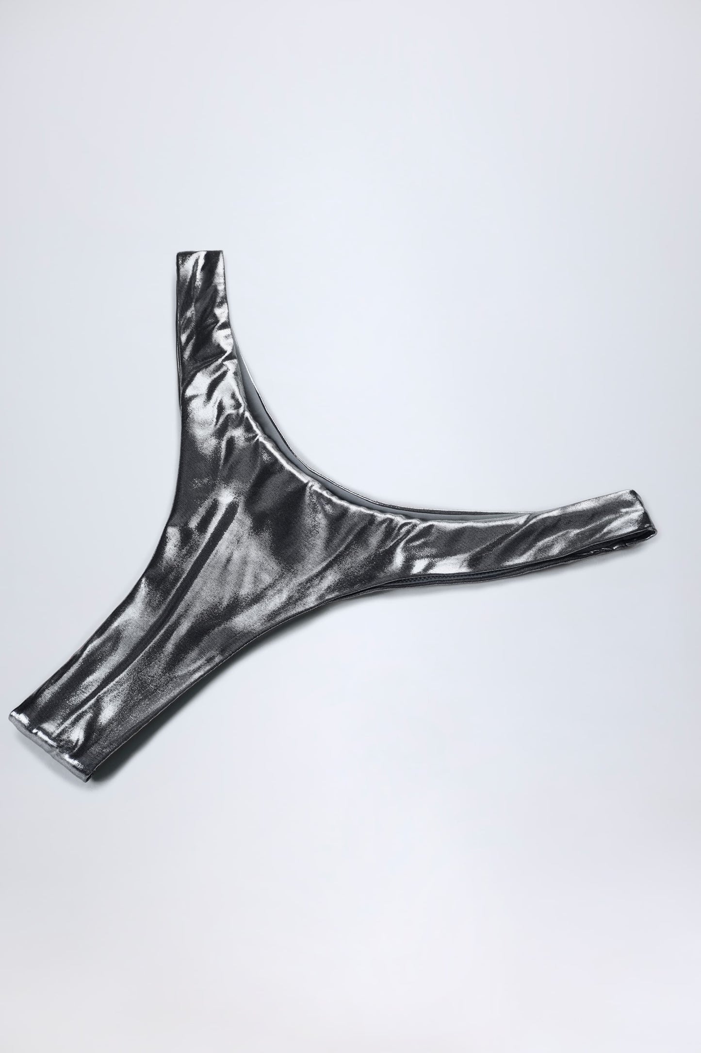 Made to shimmer. The Mar bikini bottoms are cut from our premium foiled jersey and feature a high-leg silhouette that's universally flattering. With a cheeky tanga cut and light-catching finish, they’re designed to stand out from poolside to party.