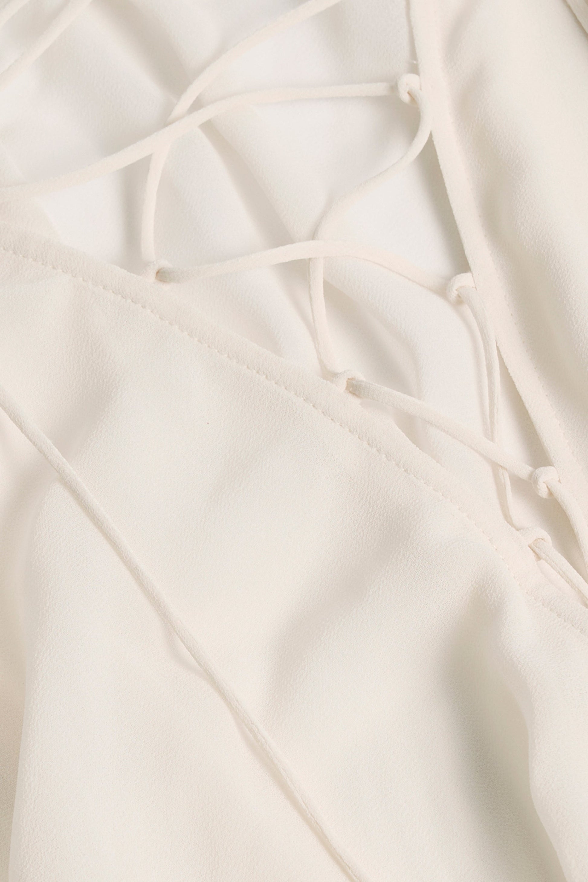 Lace-Up Balloon-Sleeve Mini Dress in Ivory