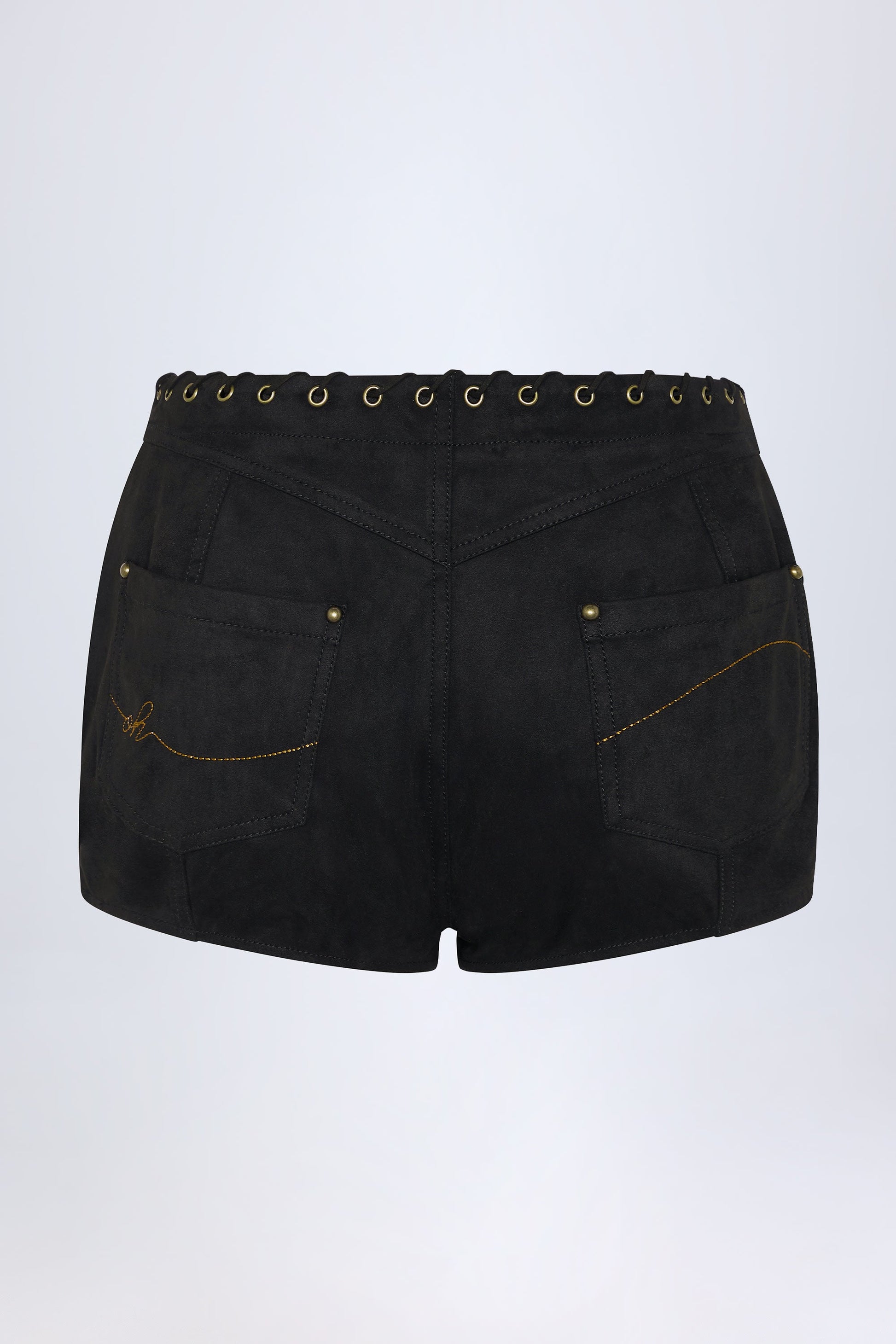 A fresh take on classic styles, the Parva shorts are crafted from premium, soft-touch faux suede with Western-inspired topstitching, eyelets and lace-up detailing. They’re cut to a flattering mid-rise fit, secure with a lace-up fly and feature two embroidered back patch pockets.