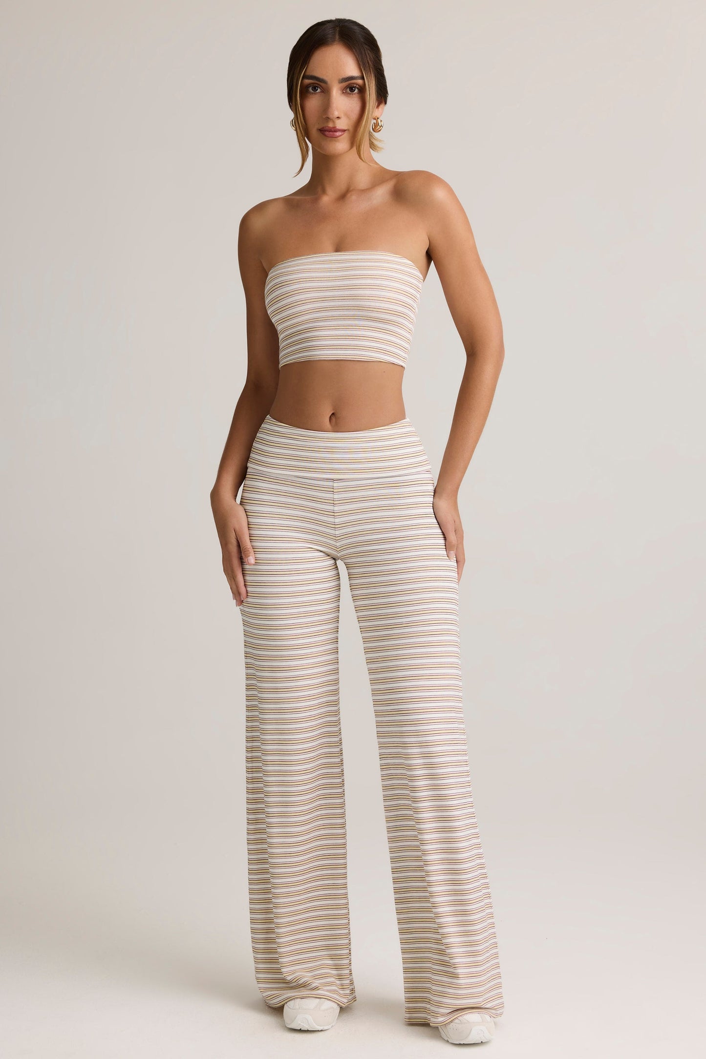 Modal Foldover Wide-Leg Trousers in Pink & Yellow Stripe