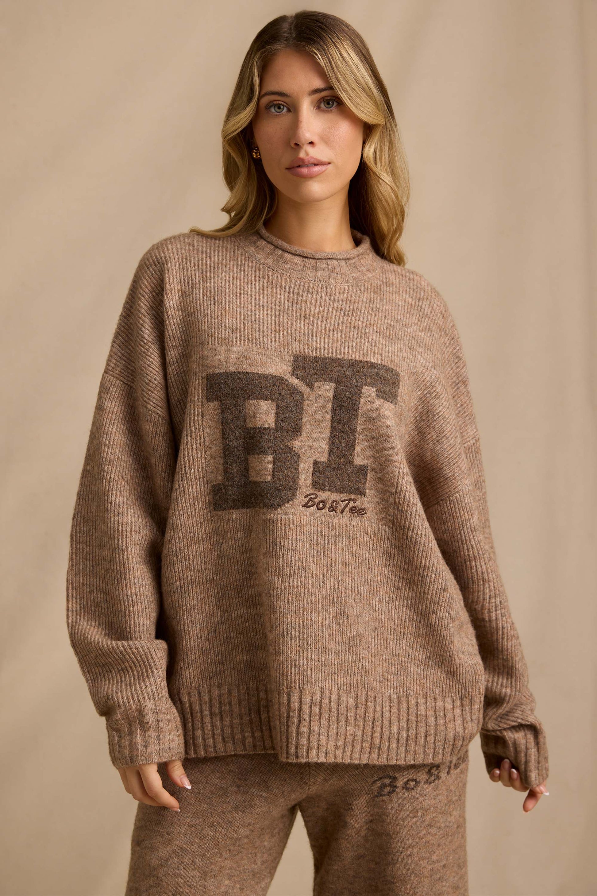 Luxe layers. A style we’re sure you’ll live in, this oversized jumper is spun from our cosy and super soft knit fabric, made with thoughtfully recycled materials, to a perfectly oversized silhouette elevated with dropped shoulders. It’s framed with a rolled high neck, ribbed cuffs and hem, and a graphic knitted Bo&Tee logo at the front.