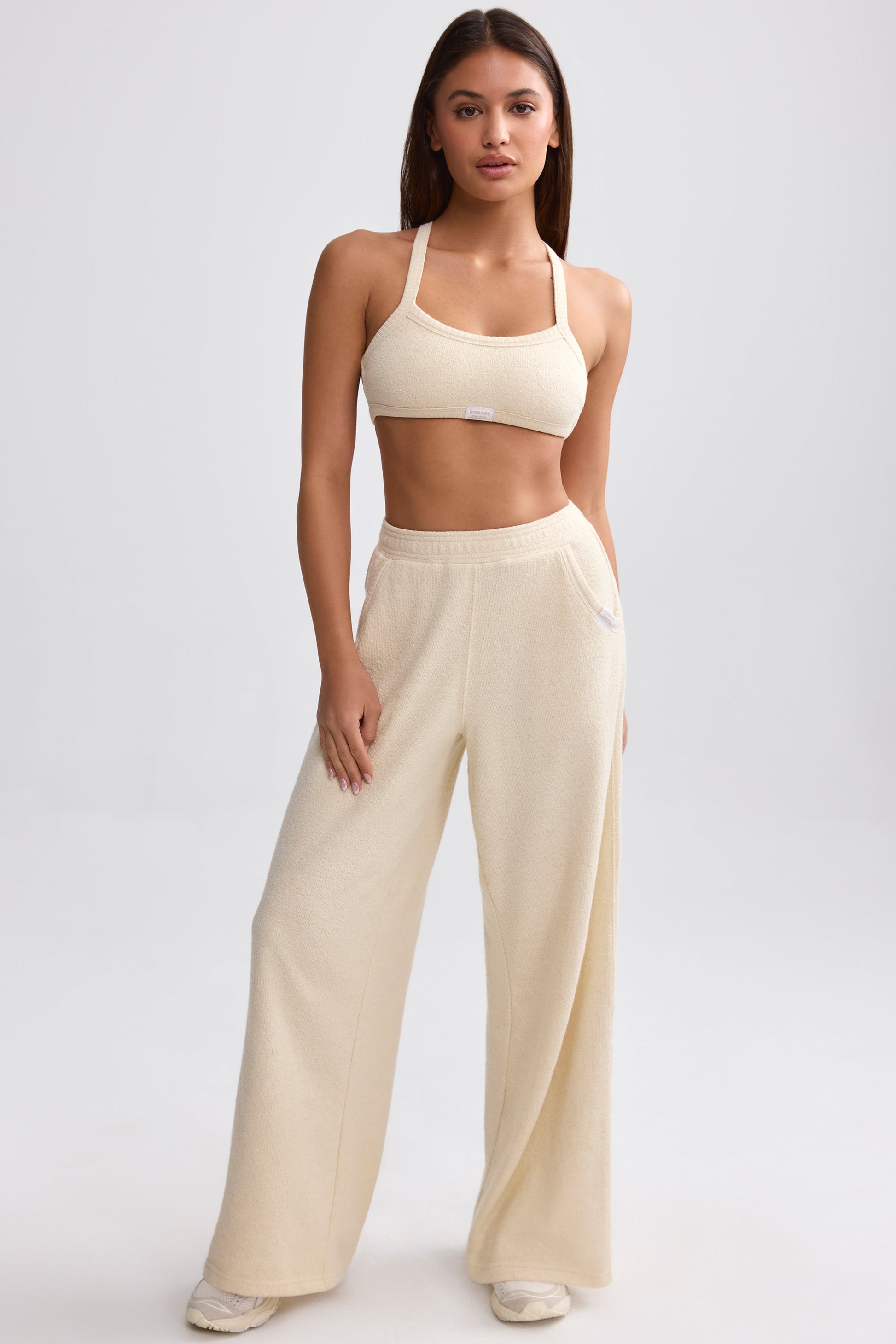 Petite Terry Towelling Wide-Leg Joggers in Cream