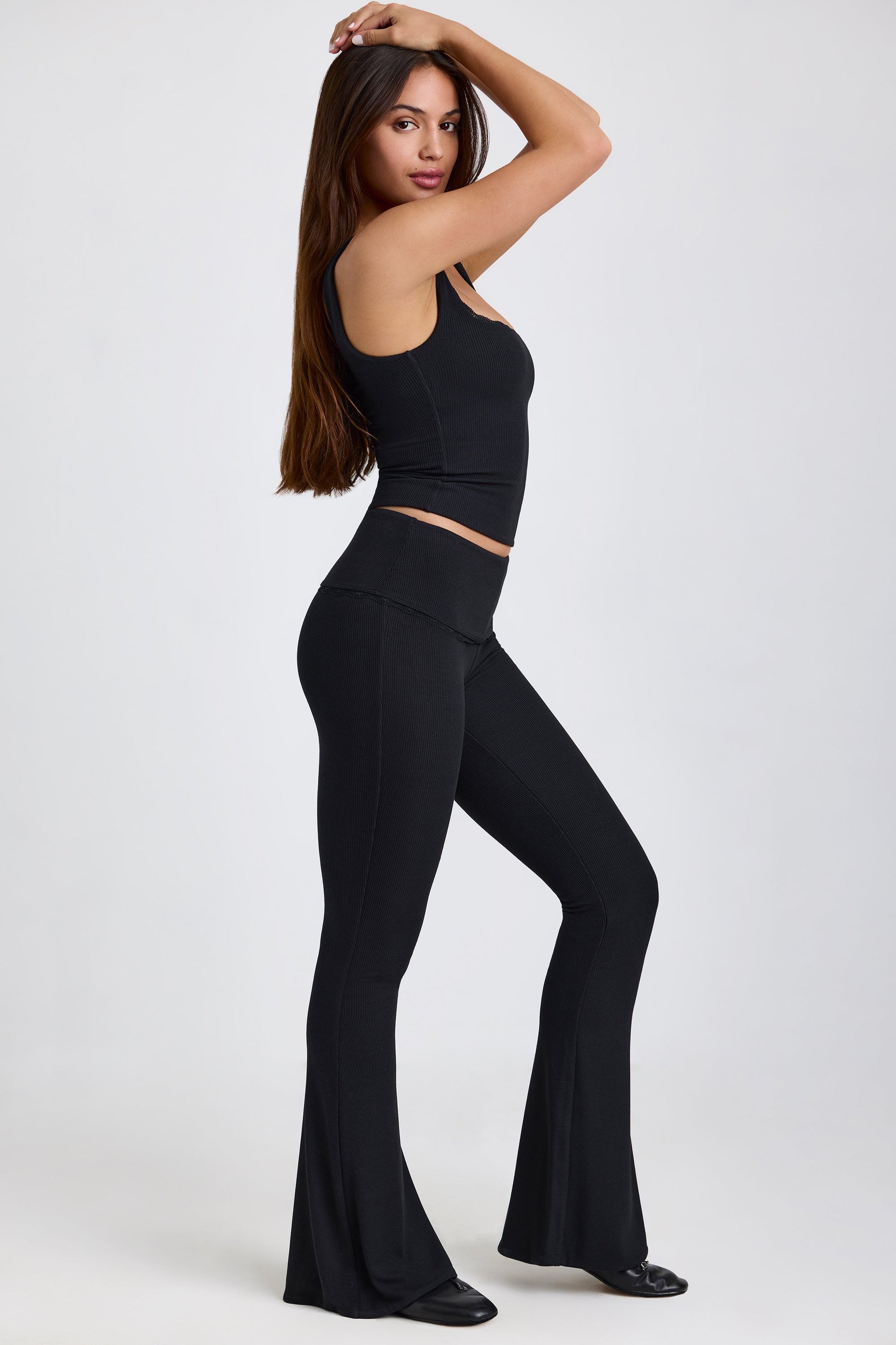 Ribbed Modal Lace-Trim Tank Top in Black