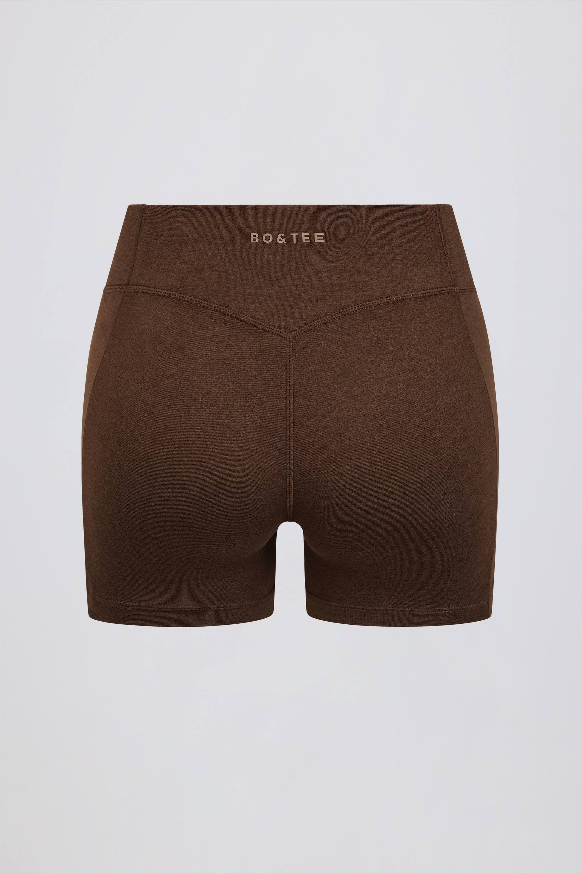 From pilates to coffee dates, meet your new daily special. Designed with a V-shaped ruched waistband for an instantly sculpting effect, these mini shorts are crafted from our premium marl jersey fabric with a soft-touch feel and the perfect amount of stretch. They’re complete with shaping side seams and a signature Bo+Tee logo at the back.