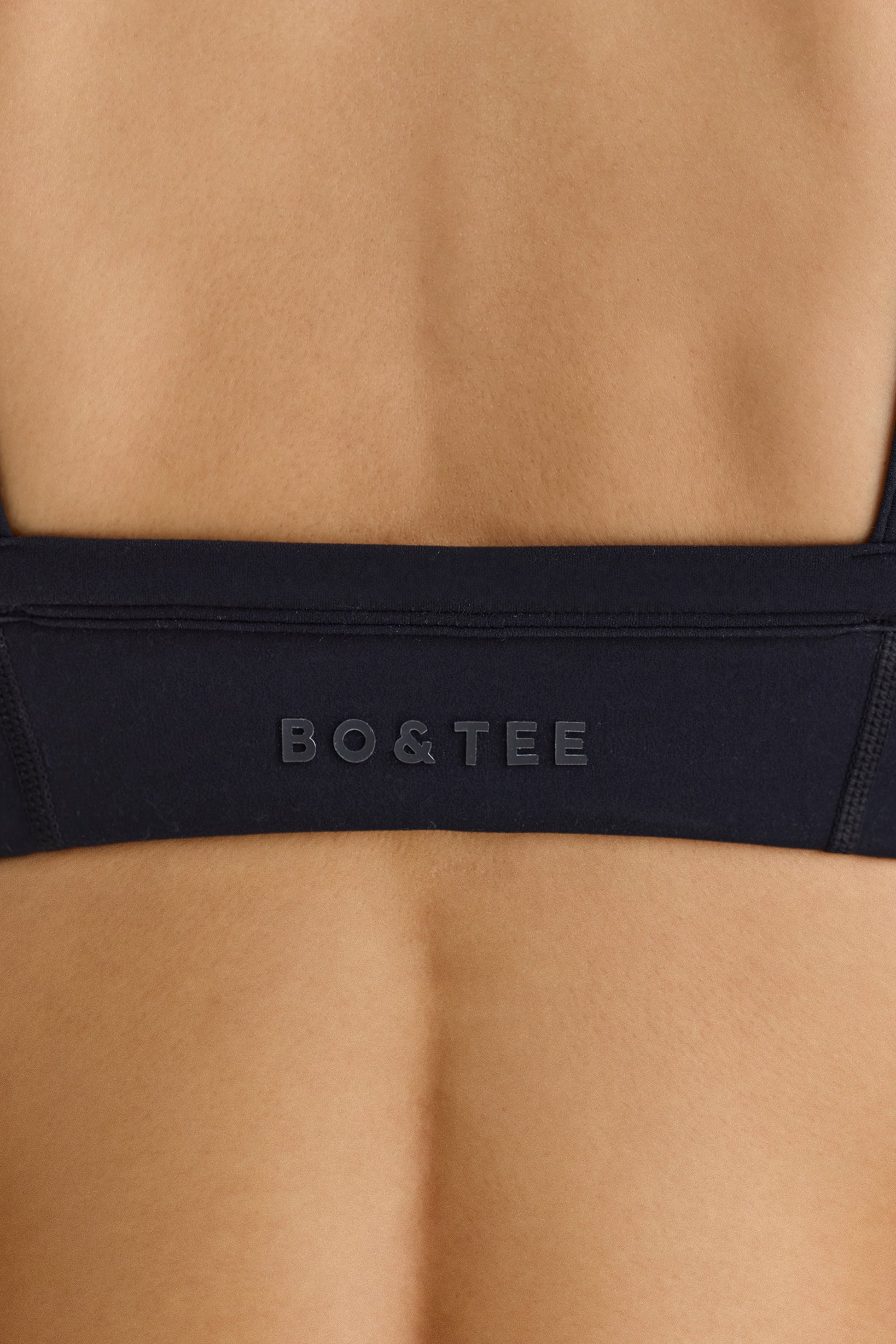 Contouring looks. This sports bra is elevated with signature bust seam detailing that creates a sculpted, lifted look. It’s crafted from our premium Soft Active fabric that boasts breathable and moisture-wicking properties and features an elasticated underbust for all-day comfort and support. It’s framed with wide fixed straps and finished with a tonal silicone Bo&Tee logo at the back.