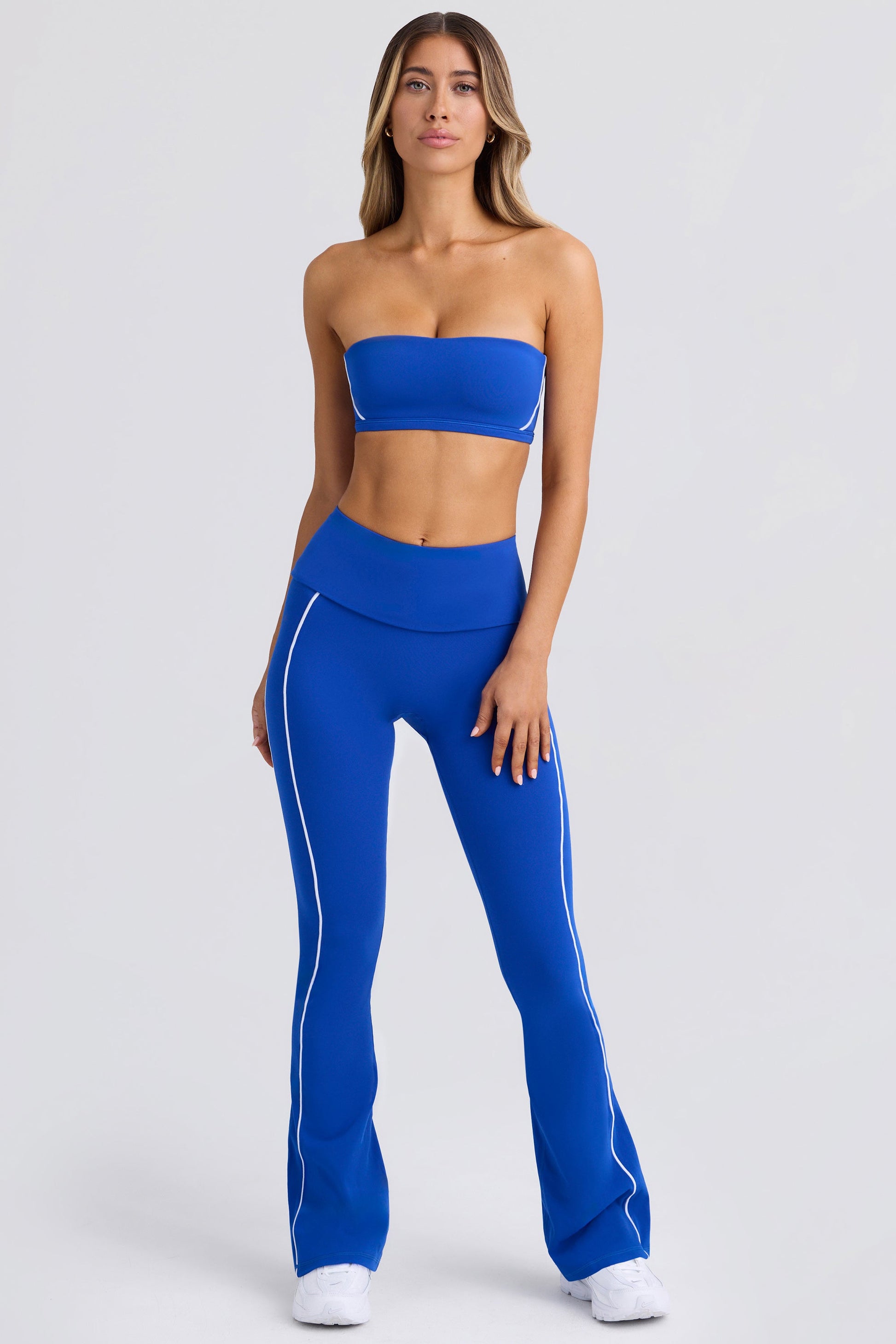 Soft Active Foldover Flared Trousers in Cobalt Blue