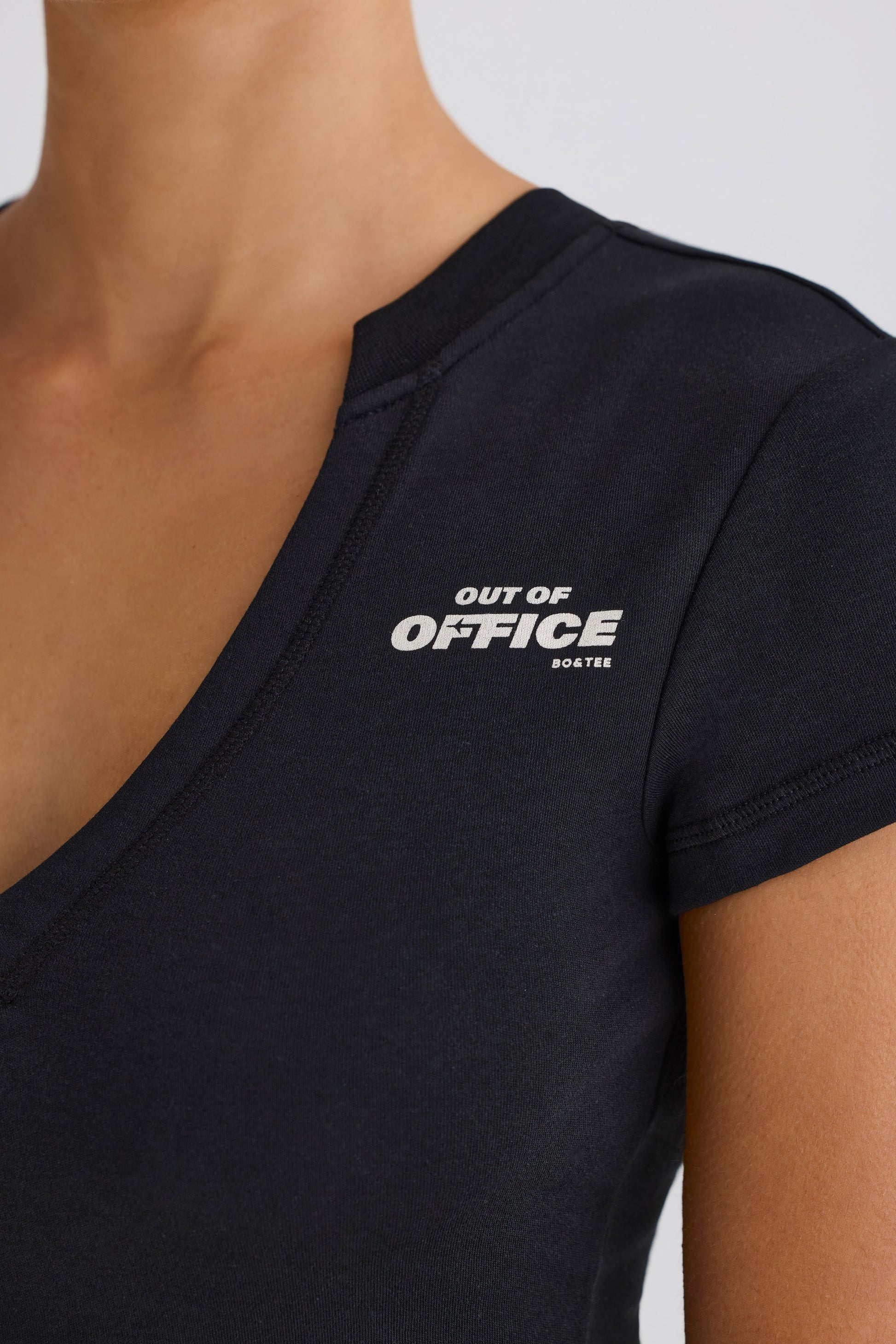 Playful staples. If you love a baby tee as much as we do, you’ll love this one. Crafted from soft and lightweight stretch-cotton jersey for enhanced breathability and comfort, it’s elevated with flatlock stitch detailing and short cap sleeves. Modelled on classic crew styles, the neckline is reimagined with a plunging V-neck design creating a laid-back look, and it’s complete with a printed slogan at the chest.