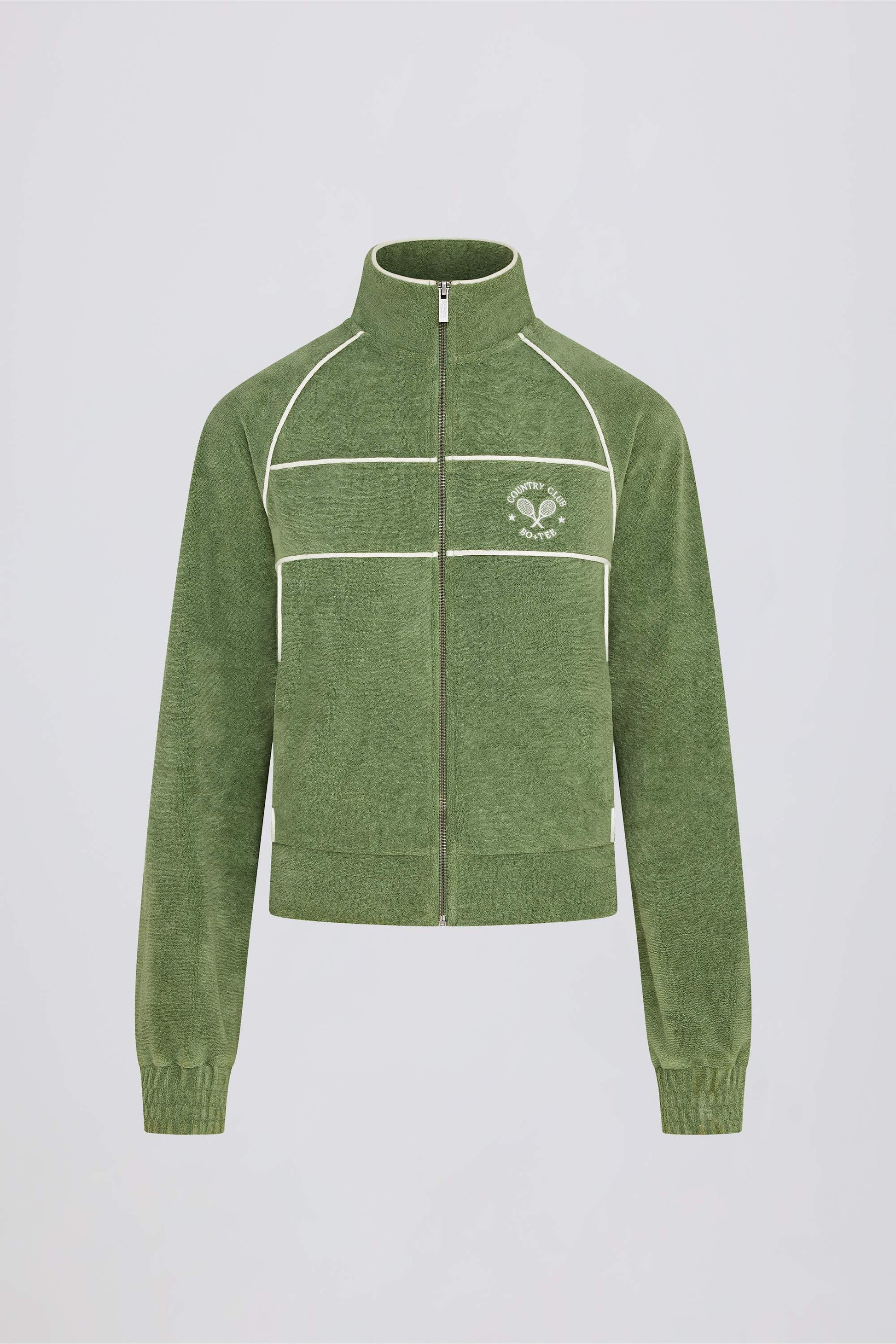 Terry Towelling Zip-Up Cropped Sweatshirt in Green