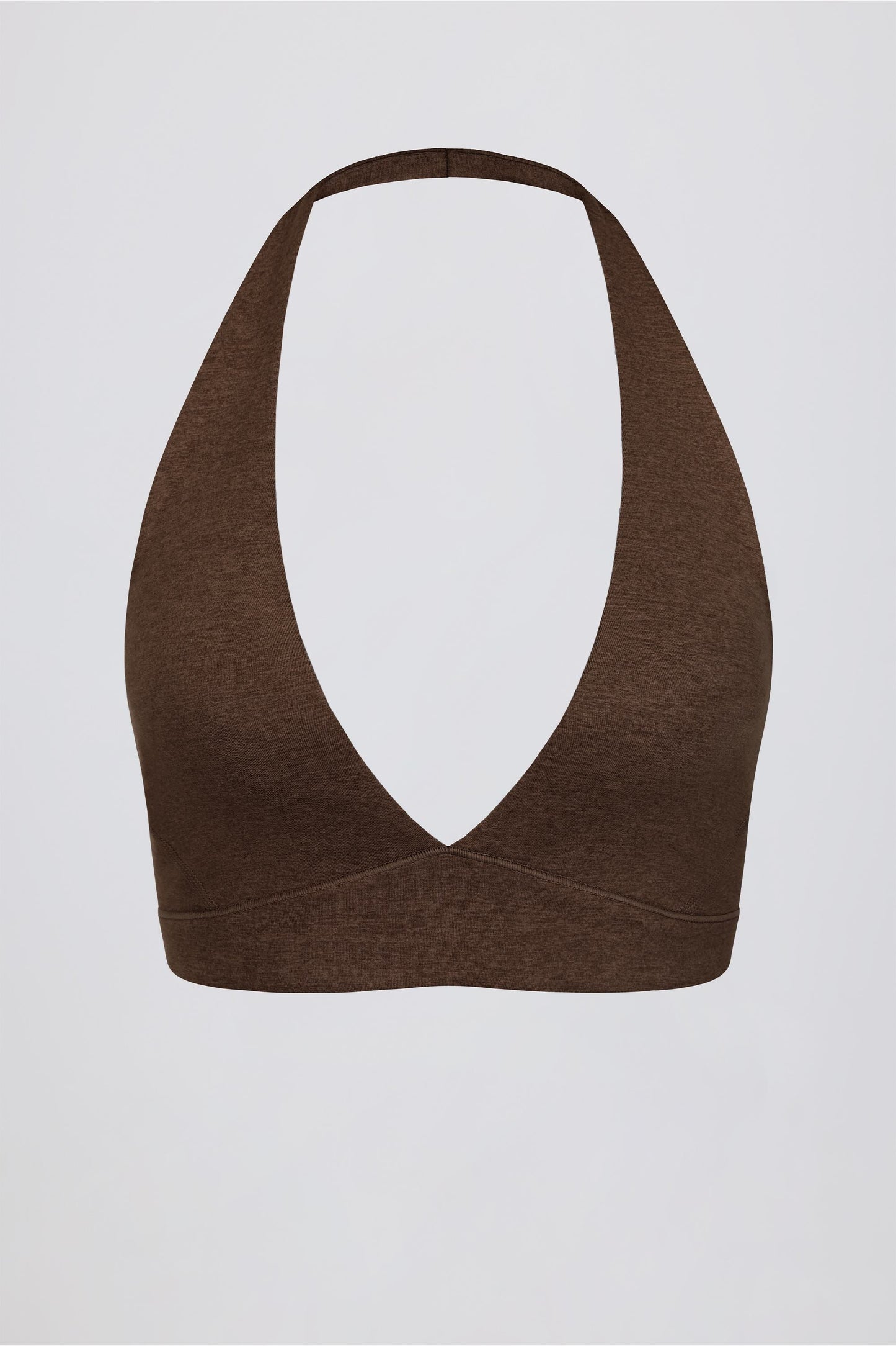 Made for morning classes and coffee dates, this low-impact sports bra doubles as the perfect styling piece. Crafted from our breathable marl jersey with a soft-touch feel and a stretchy handle for enhanced comfort, it’s cut to a plunging V-neck silhouette with a non-restrictive underband for light support. It’s framed with a fixed halterneck strap and open back.