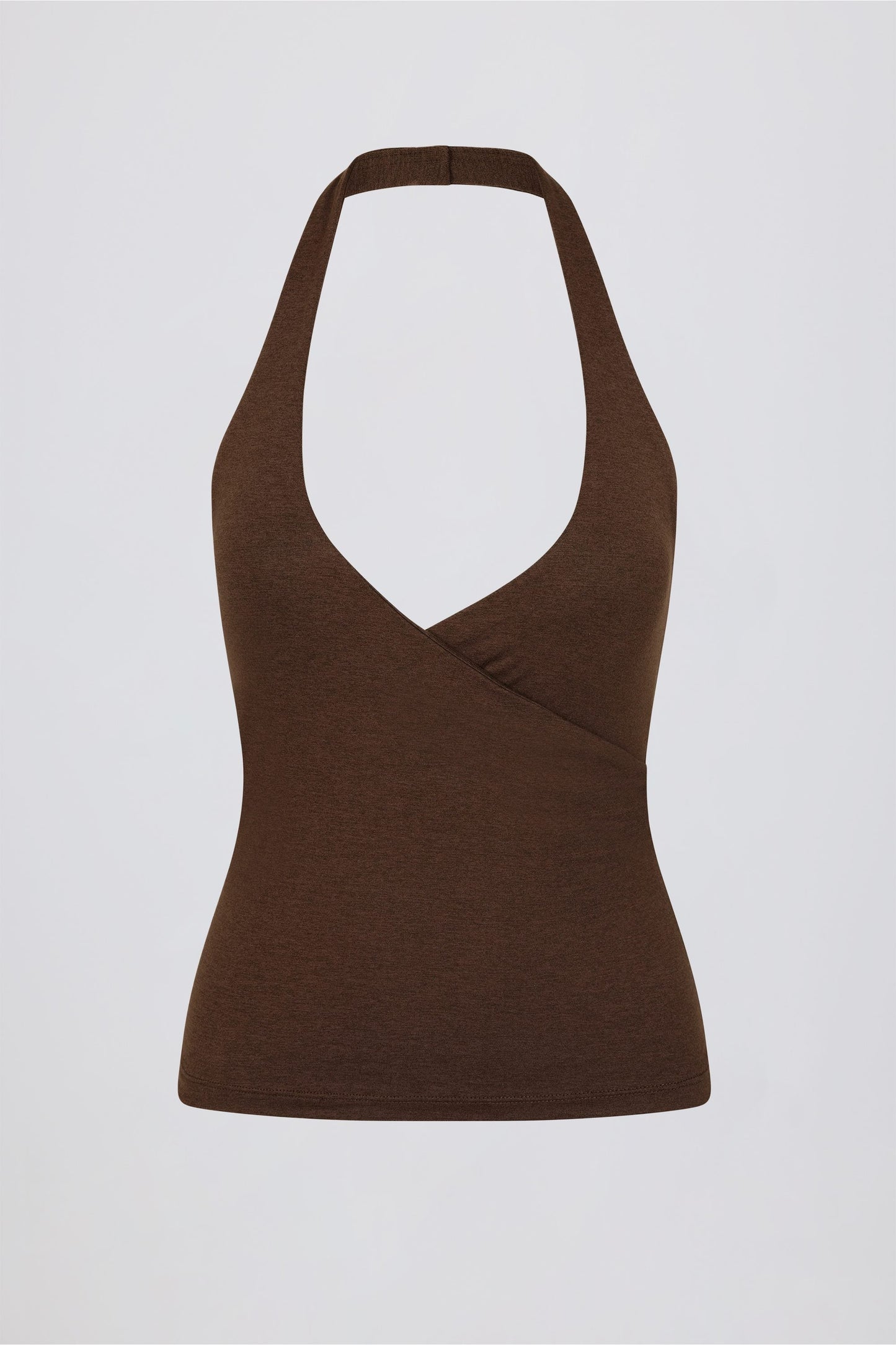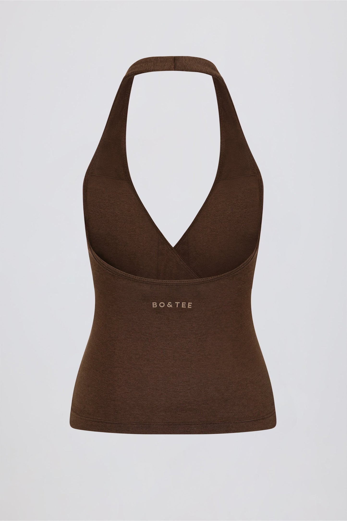 Your favourite soft girl aesthetic meets a deliciously smooth palette with this tank top, perfect for workout class-to-coffee styling. Crafted from premium marl jersey fabric with a super soft feel, it’s cut to a halterneck silhouette with a secure fixed strap, internal padding and features a wrap-over design inspired by classic styles. It’s complete with an open back and signature subtle branding at the back.